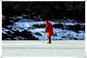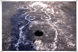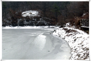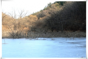| 동이면에 위치한 소류지... 전체적으로 결빙이 되었지만 얼음두께는 약 2cm |