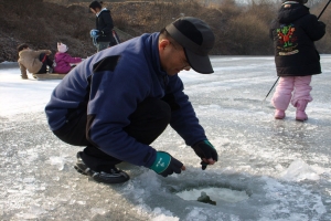 아빠는 뚫고, 딸은 건지고...ㅎㅎㅎ |