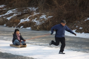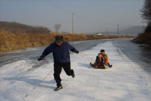 썰매를 끌고 난뒤에 막걸리 한사발 캬~ |