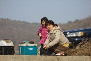 | 아빠는 뚫고, 딸은 건지고...ㅎㅎㅎ |