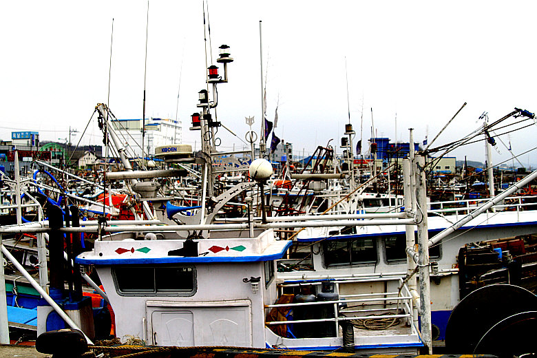 | 거센 파도에 발 묶인 고기잡이 어선들의 휴식... |