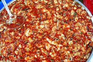 | 금방 막 담가서 즉석에서 판매하는 어리굴젓... 발효된거하고 비교하니 색다른 맛 과 싱싱함을 느낄수 있어서한통에 마넌짜리 두통 사왔구요. |