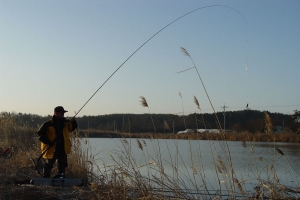 | 밤새 잔챙이 성화에 시달린 지우정우님의 아침낚시 모습 |