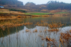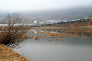 이슬비가 내리는 통에 주변경관이 뿌옇고... 바닷가 옆 각지형 저수지인데 5년전에 준설하였고 붕어서식 밀집도는 확인 안됩니다. 물색이 좀 맑은편이라 낚시시도는 안하였읍니다. |