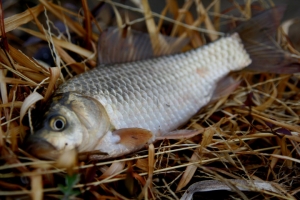 | 샛 가지수로에 붕어가 붙어있읍니다. |
