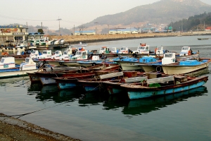 | 갯바위꾼들을 실어 나르는 소형배들... 다도해이기땜에 큰배가 아니라도 괜찮가 봅니다. |