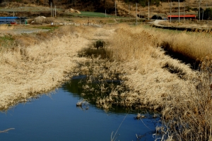 소류지 주변 땟장수초 가득한 수로도 좀 이른 감이 있는 듯 물색이 별로네요 |