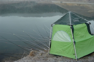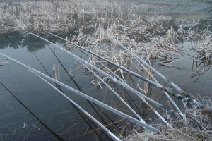 낚싯대에 하얗게 서리가 내렸습니다 |