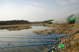 | 수심 약 70cm. 오른쪽에서 2번째 대인 4.7칸대에서 유일하게 입질을 봤습니다만.. |