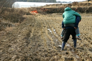| 상류권 비닐하우스 앞을 지키고 있는 지우정우님과 봉봉님 |