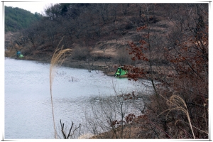 | 요즘 한창 물이 오른 0.1초님... 아직 육감이 오는 포인트가 없다시며 1시간째 저수지를 돌아보고 있습니다. |