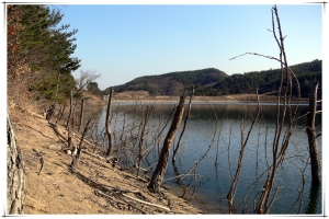 | 사천권에 위치한 계곡형 저수지... 제방에서 우측편을 바라보고... |