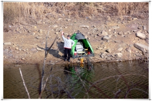 요즘 한창 물이 오른 0.1초님... 아직 육감이 오는 포인트가 없다시며 1시간째 저수지를 돌아보고 있습니다. |
