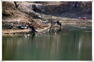 | 상류권 우측 수몰나무 포인트에 자리를 잡고 계신 조사님들 |