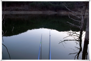 | 이부장은 고사목이 열린 포인트에 떡밥낚시 채비로 대편성을 하였습니다. |