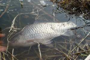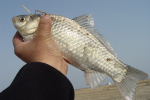 정당수로권에서 나온 9치급 수로붕어의 모습 |