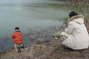 초보 아들이 낚시하는 모습을 지켜보는 에미의 심정은 어떨까요 |