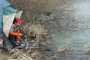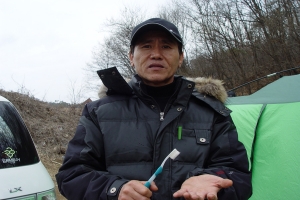 | 찌솟음님이 찌를 응시하면서 낚시를 하는 모습 |