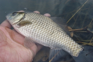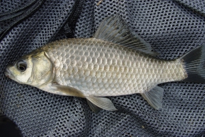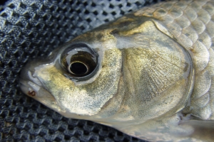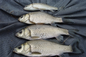 | 새우와 참붕어를 먹거 나온 소류지 붕어의 모습 |