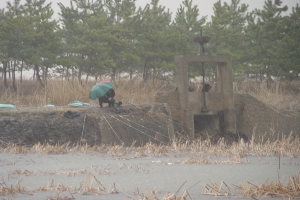 스톤헤드님이 조그만 우산을 가지고 강풍을 동반한 비를 피하는 모습.^^ |