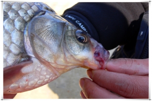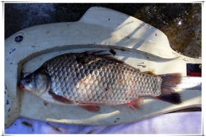 | 거친 반항을 하다.. 월척급 붕어가 수면으로 모습을 비춥니다. |