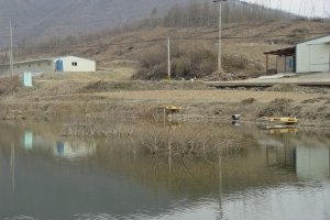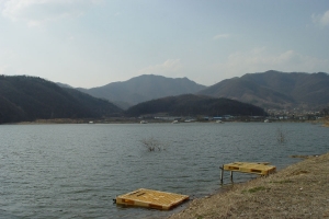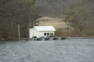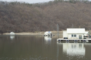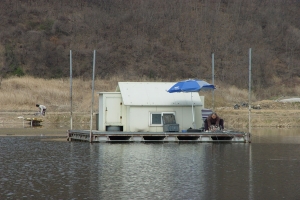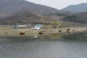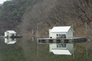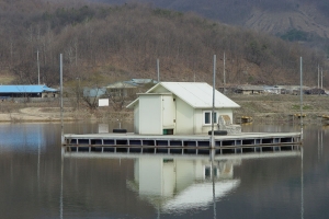 | 관리소 맞은편 산아래 포인트에 자리잡은 수상좌대의 모습 |
