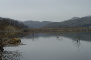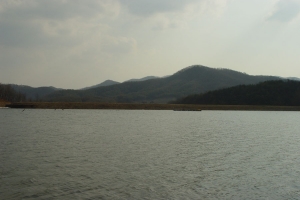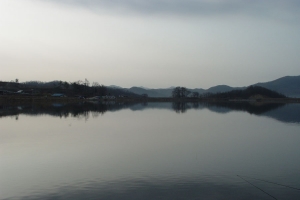 | 만수위의 노은지를 관리소앞에서 상류를 바라 본 전경 |