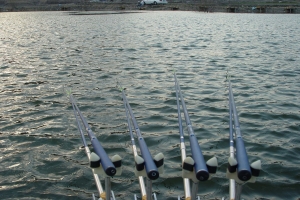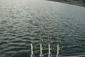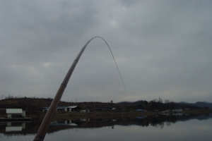 | 해뜰 무렵에 내림낚시로 힘찬 화이팅을 보여주는 쥴리의 낚싯대 |
