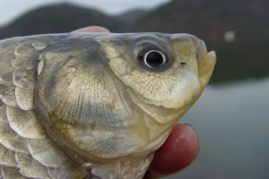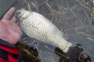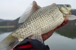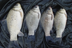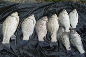 노은지에서 나온 9치급과 7치급 토종붕어의 모습 |