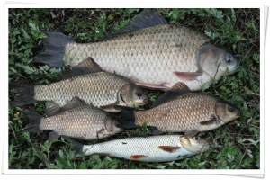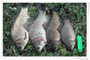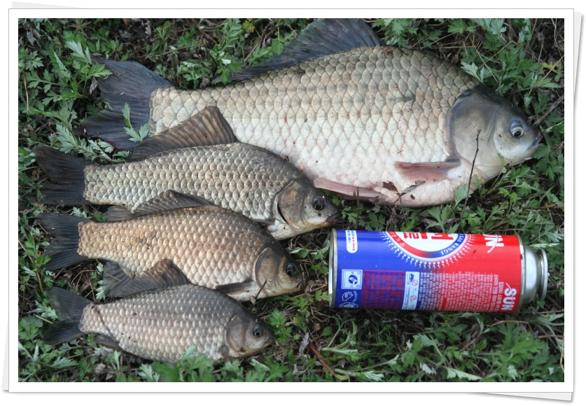 중상류에 앉은 퓨전님의 일요일 오후까지의 조과물~~ 떡붕어는 43cm급, 토종붕어는 9치, 8치, 6치급. |