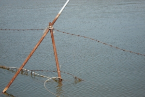 | 주민들이 낚시인들의 쓰레기문제 해결방안으로 철조망을 둘러쳐 놓았습니다. |