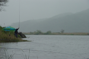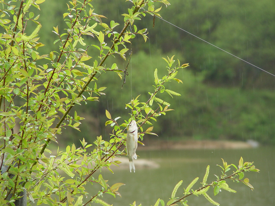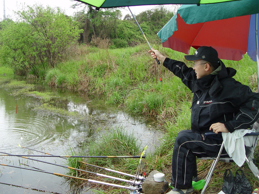 이제 붕어를 잡아내기 위한 만반의 준비가 끝났습니다 |