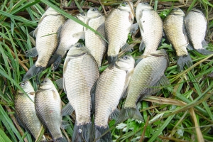 늘씬하고 잘생긴 소류지 붕어의 모습입니다 |