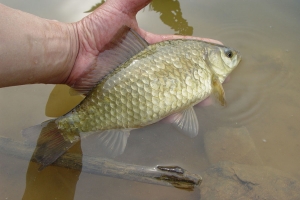 | 오전 8시경에 현지조사님이 걸어낸 34센티급 월척붕어입니다 |
