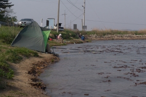 채집망을 담궈 보지만 블루길, 베스 때문에 빈작 입니다. |