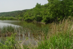 아담한 소류지 전체 전경 |