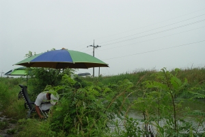| 동행취재를 한 윤교수님은 둠벙과 수로의 연결 부분에 자리를 잡았습니다 |