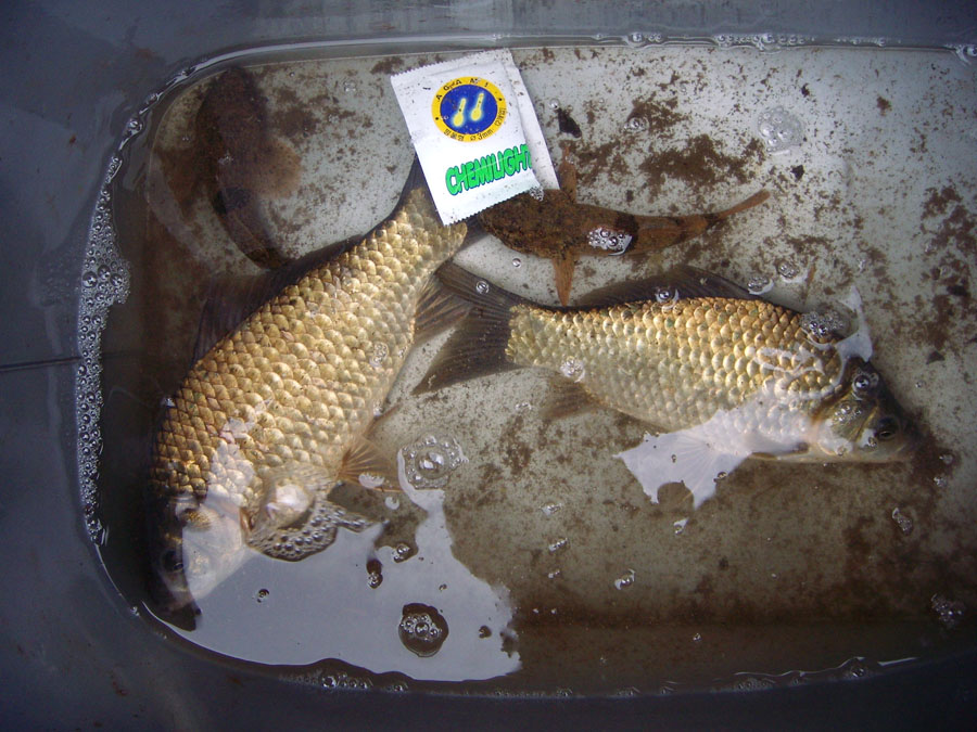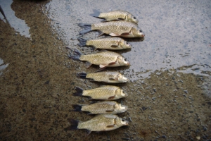 아침에 어렵게 얼굴을 보여준 월척급 붕어입니다. |