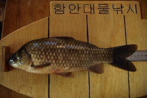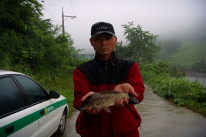 | 아침에 어렵게 얼굴을 보여준 월척급 붕어입니다. |