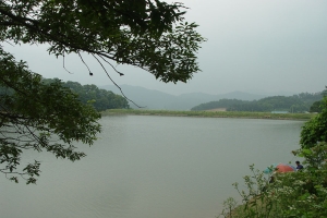 | 비가 내리면서 오름 수위를 보여주고 있는 관성지 제방권 전경 |