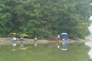 붕어가 나온다는 소식을 듣고 많은 조사들이 자리를 했습니다. |