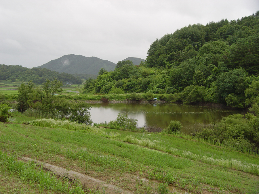 | 소류지 최상류권에서 제방을 바라 본 전경 |