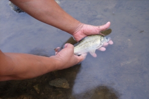 본인이 낚은 붕어를 들고서... 타임님 축하드립니다.^^ |