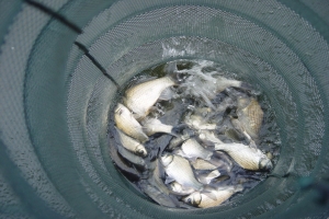 굵은 씨알의 붕어가 모습을 보입니다. |
