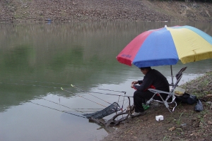 밤낚시를 하고 아침낚시를 즐기는 조사의 낚시 모습 |