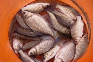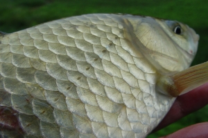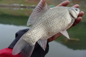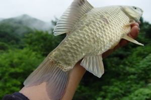은행잎 모양의 비늘이 전형적인 토종붕어를 말해 줍니다. |
