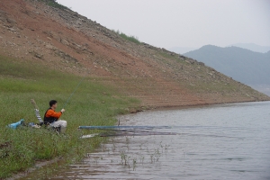 | 윤교수님은 수심이 깊은 포인트에 내림채비를 편성했습니다. |