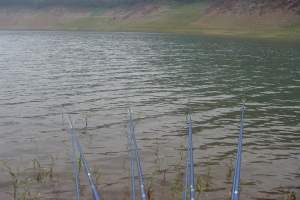 윤교수님은 수심이 깊은 포인트에 내림채비를 편성했습니다. |