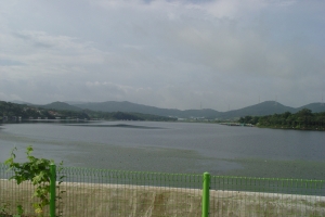 | 마름수초와 연안 육초대포인트에 배치된 좌대 |