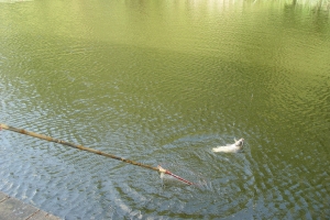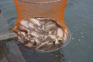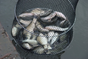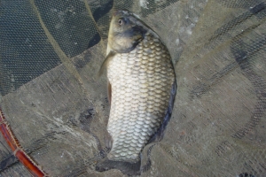 | 힘겨루기 끝에 모습을 보인 붕어 |